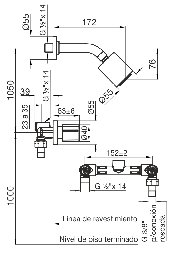 Caudal: Caudal mínimo de salida a presión estática 0.4 BAR y caudal mínimo de alimentación de 20 lts por minuto: 7,5 lts por minuto.