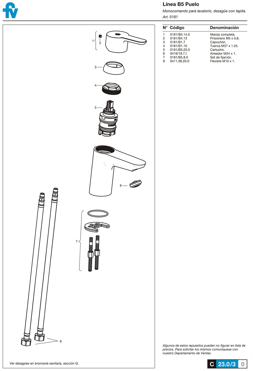0181/B5 Puelo – Juego monocomando para lavatorio