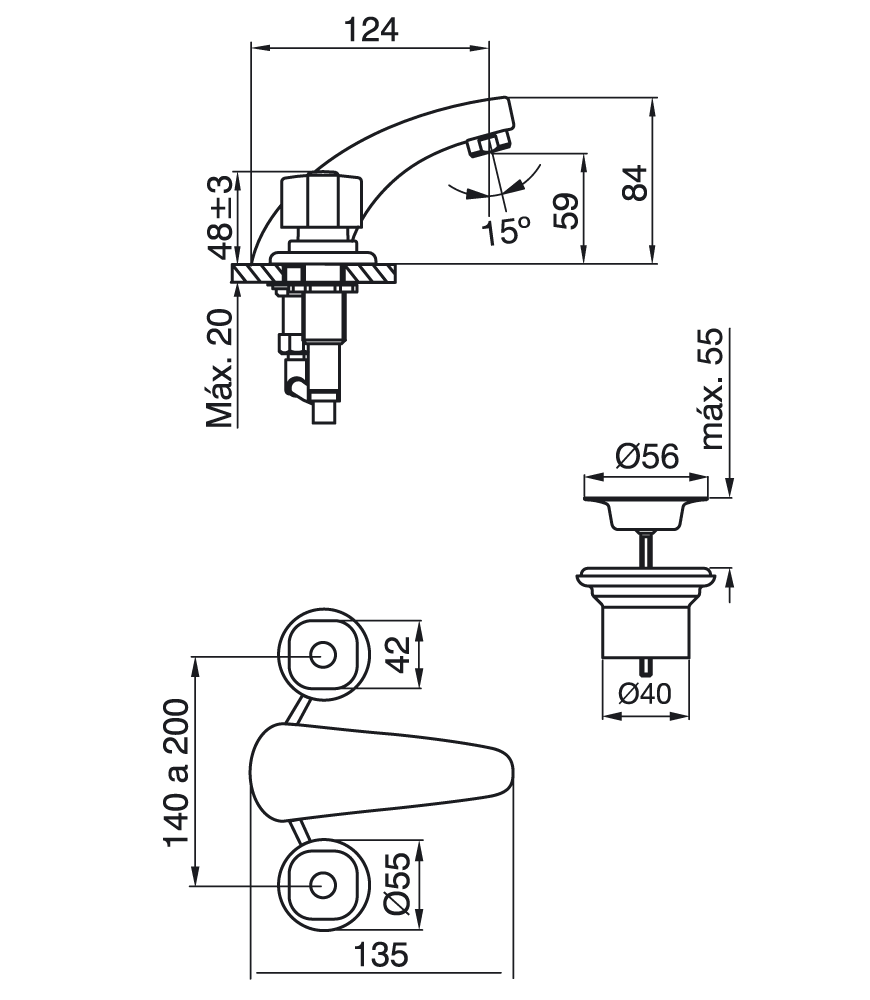 Caudal: Caudal mínimo de salida a presión estática requerida de 0.4 BAR y caudal mínimo de alimentación de 20 lts por minuto: 4,5 lts por minuto.