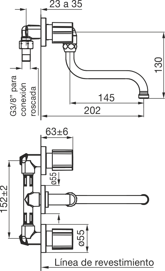 Caudal: Caudal mínimo de salida a presión estática de 0.4 BAR y caudal mínimo de alimentación de 20 lts por minuto (en conexiones fría y caliente): 20 lts por minuto.