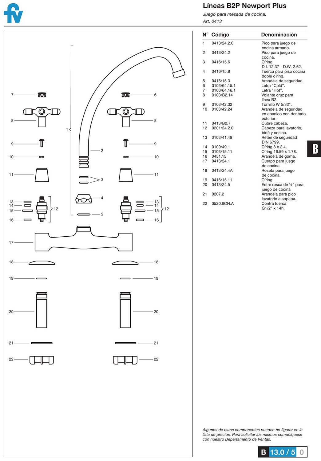 Caudal: Caudal mínimo de salida, a presión estática requerida 0.4 BAR y caudal mínimo de alimentación de 20 lts por minuto (en conexiones fría y caliente): 10 lts por minuto.