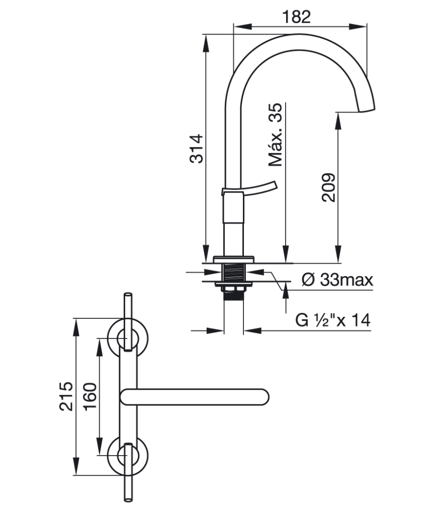 Caudal: Caudal mínimo de salida a presión estática requerida de 0.4 BAR y caudal mínimo de alimentación de 20 lts por minuto (en conexiones fría y caliente): 4.5 lts por minuto.