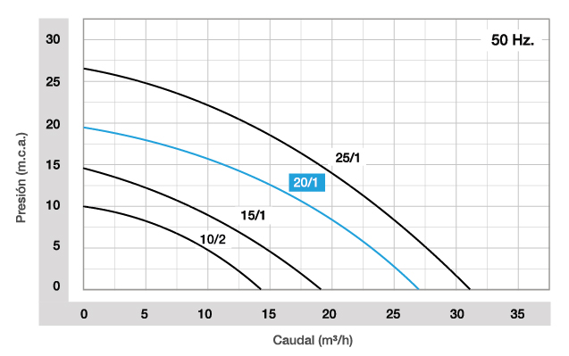 - Pérdida de carga máxima en succión: 4 m.c.a.