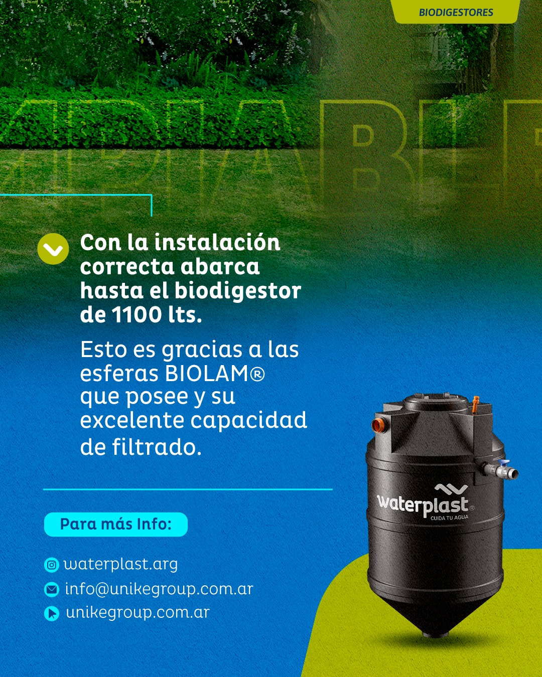 La forma más moderna y sustentable de tratar las aguas residuales del hogar (evitan la contaminación de las napas). Autolimpiables, son los únicos del mercado con tuberías de polipropileno (más resistentes y durables) y con esferas BIOLAM® de mayor tamaño y superficie (permiten un eficaz desarrollo de biomasa adherida).