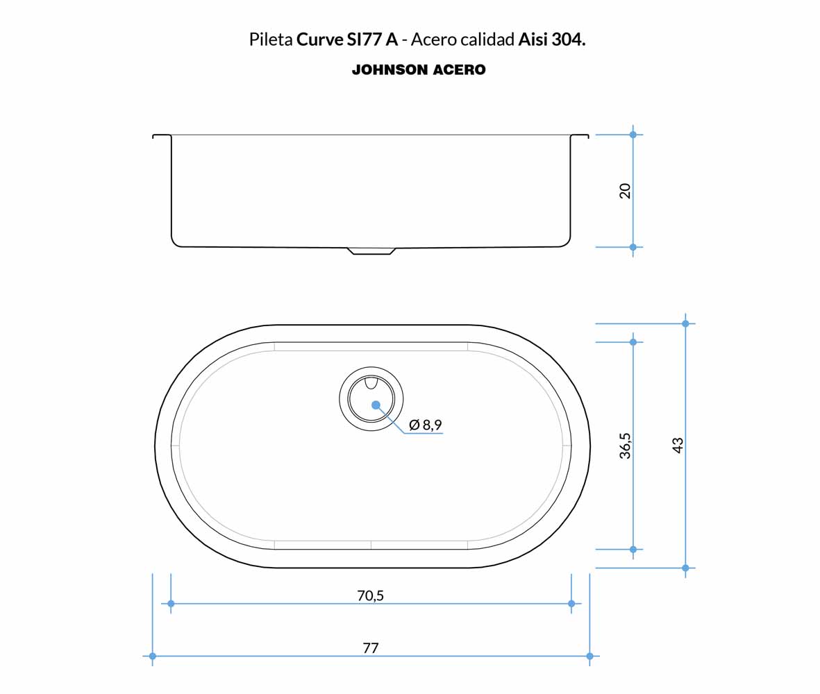 - Pileta de gran capacidad en acero inoxidable calidad AISI 304