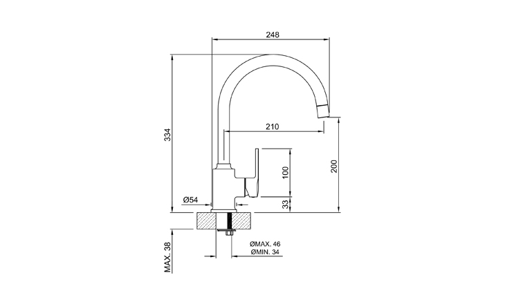 Base del monocomando: mínimo Ø 34 mm, máximo Ø46
