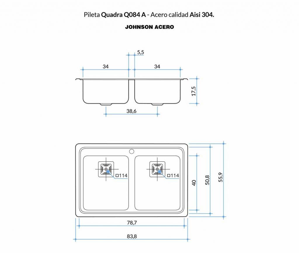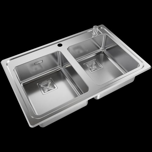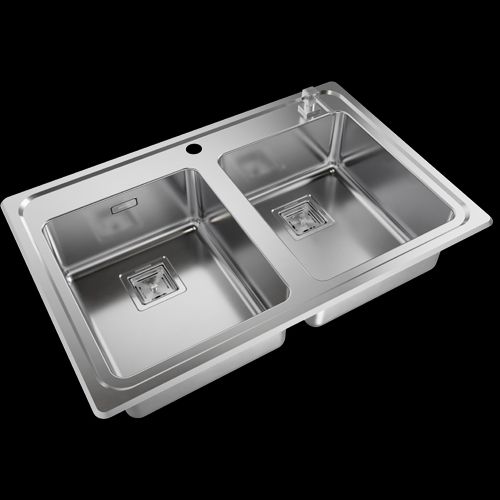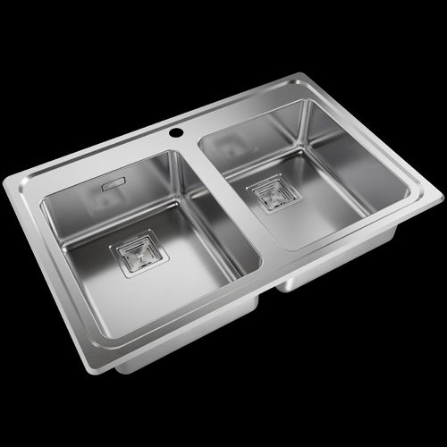 Pileta doble de gran capacidad y tamaño. Diseñada para mesadas profundas.