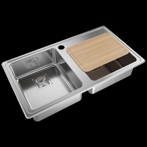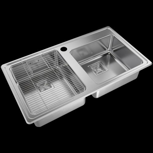 De aplicación sobrepuesta, por su elegante borde decorativo. Admite su colocación inferior o soldada a una mesada de acero inoxidable.