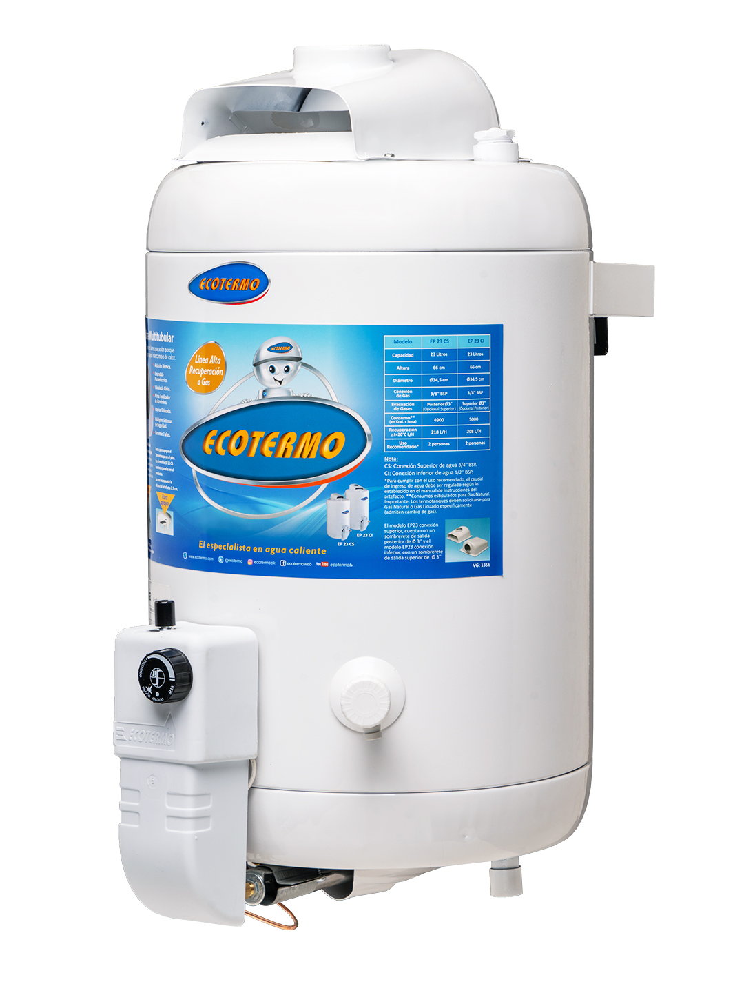 Recuperación GN: 208 L/h – GL: 201 L/h
