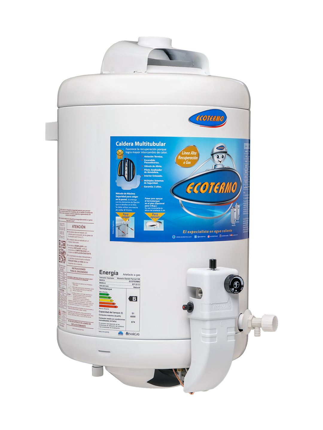 Recuperación GN: 228 L/h – GL: 236 L/h