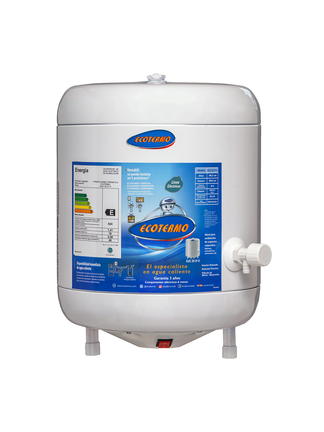 Utilizable en duchas sólo como termotanque suplementario.